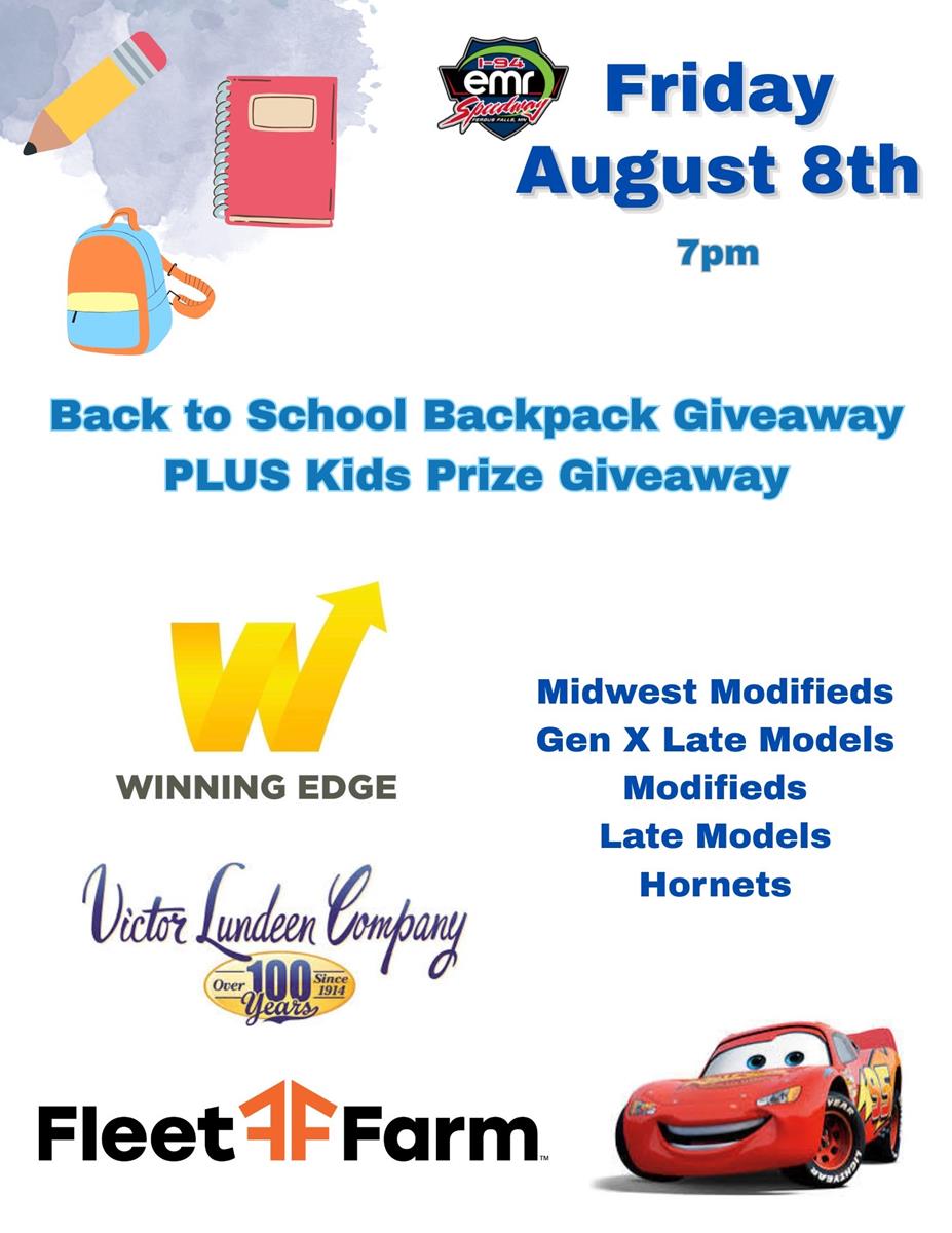 Due to the rain on our previous kids night (June 7th) we didn’t get the opportunity to do our prize giveaway. We are making this Friday a huge KIDS NIGHT combining it with our backpack giveaway! Thank you to all the drivers that gave money, toys and apparel. We appreciate you!!